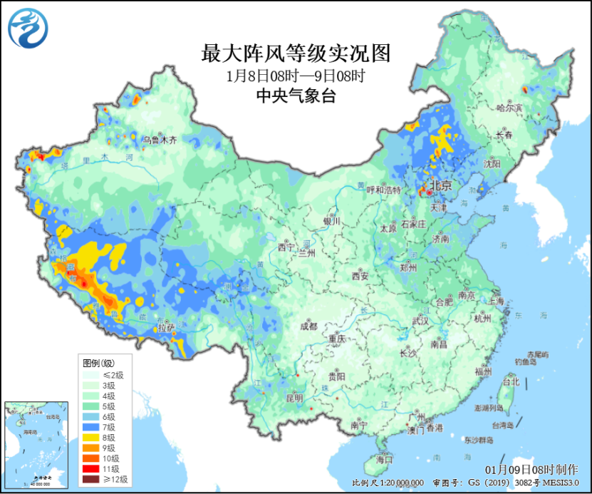 央视网消息:据中央气象台网站消息,气象监测显示,昨日,受冷空气影响,内蒙古中部、京津冀、辽宁西部和南部等地出现6~8级阵风,局地9~11级。今晨,华北中南部、黄淮中北部及辽宁东部、吉林东部、西藏东部、青海东南部、川西高原北部等地出现6~10℃降温,局地降幅超过12℃。